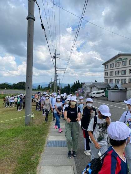明日の天候が悪そうなので、予定変更して今から登山をします。モニュメントまでいき、全員で山頂目指します。