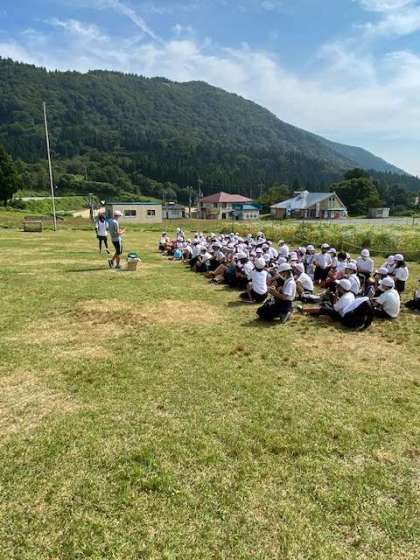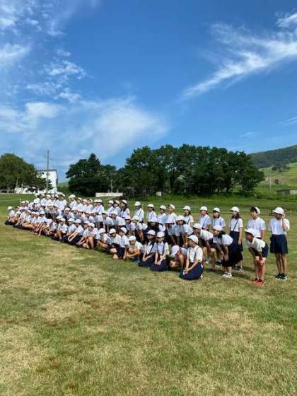 学年全体で写真を撮ってから、高原遊びをします。今日も暑いですが、ハチ高原を満喫します。