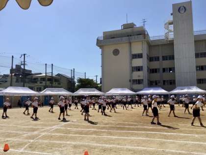 1年生は、「おどる ☆ ピカピカの1ねんせい」を 発表しました。かっこいいポーズを たくさん決めて、みなさんにも たくさんの元気を とどけます。
