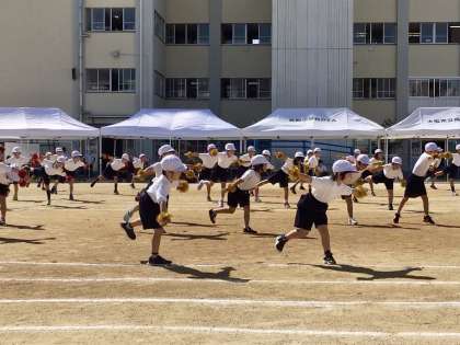 1年生は、小学校初めての 運動会です。本日は、成長した 子どもたちの姿を ご覧いただくことができました。