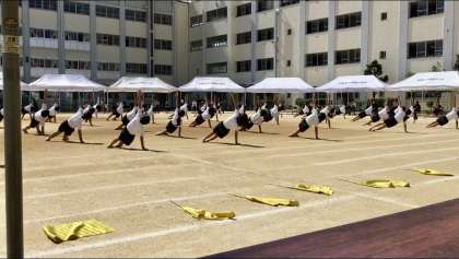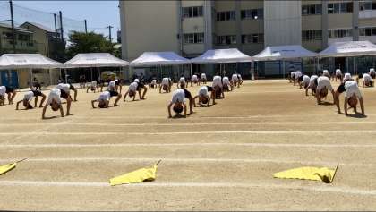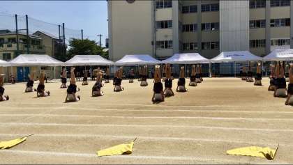 バランス技が、どんどん続きます。もちろん、ピタリと決めていきます。6年生のみんな、息がそろっています。素晴らしい。
