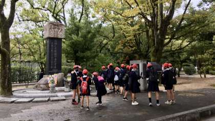 平和記念公園の中にある石碑巡り 碑巡りの最終地点は、韓国人原爆犠牲者慰霊碑です。