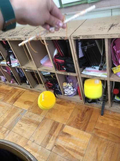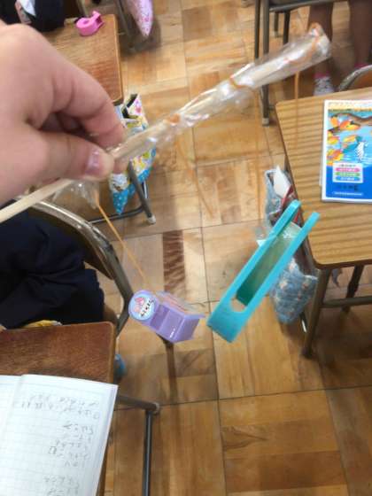 手で比べてもわかりにくい重さの違いがわごむにつるすことではっきりとわかりました。