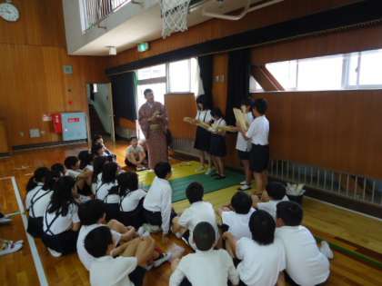 来月行われる「ちびっこ寄席」を前に、6年生を対象にした出前授業が行われました。