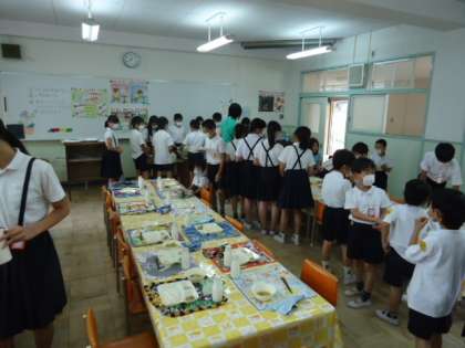 教室やランチルームに分かれて、担任の先生や学年担当の先生だけでなく、校長先生や普段は職員室で食べる教職員にも入っていただきました。