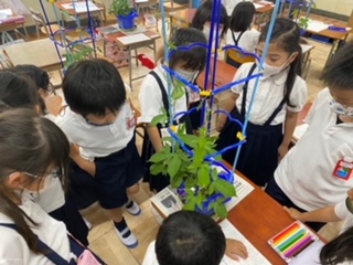 また、観察カードには「つぼみがたくさんつきはじめました。」、「まえとくらべて、つるがのびてきました。」、「みずやりをがんばるから、はやくはながさいてほしいです。」など、自分の言葉であさがおについて気づいたことや思ったことを書くことができました。