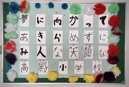 毎朝登校する子どもたちが、このメッセージを意識しながら教室に上がっていきます。おもわず「今日もがんばるぞ!」と元気になります。