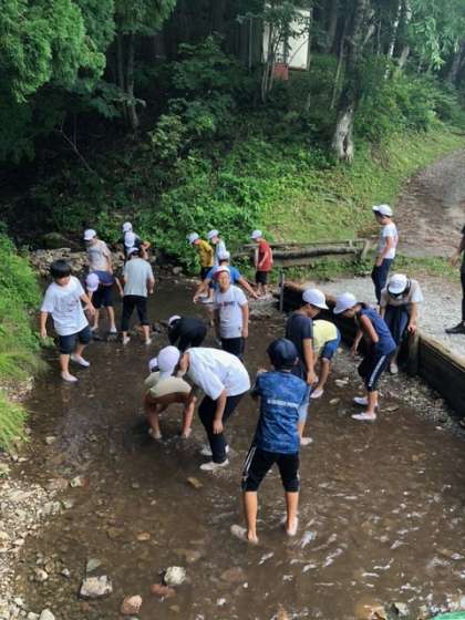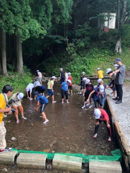 林間学習 2日目 ニジマスつかみ