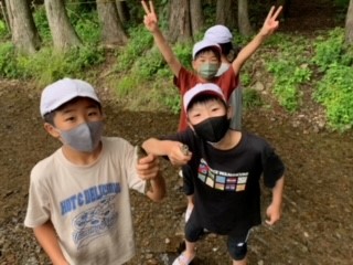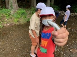 林間学習 2日目 ニジマスつかみ