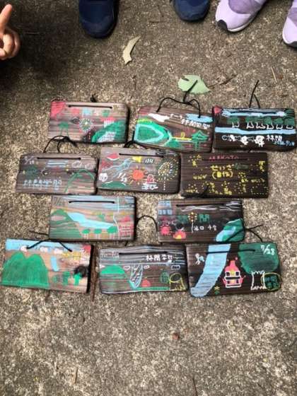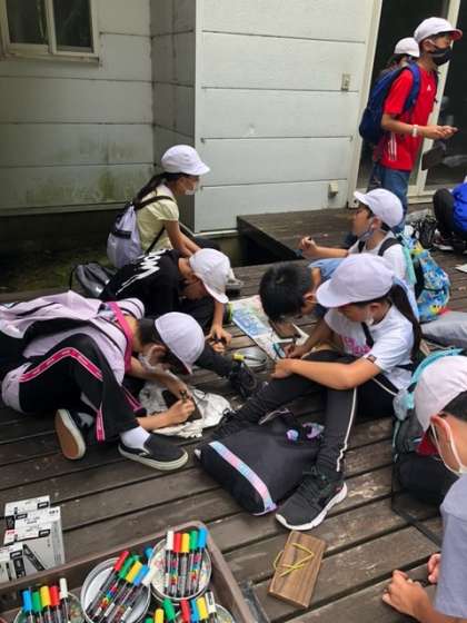 昨日磨いた杉板に、ペイントアートをして、記念のプレートを完成させました。