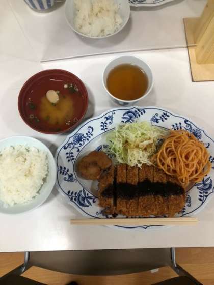夕食のメニューは、とんかつと鳥の照り焼き、スパゲティーです。