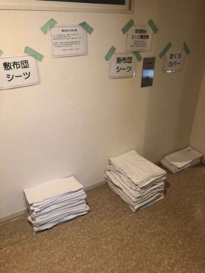 布団をたたみ、シーツを種別ごとにたたみます。