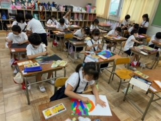 きれいに自分たちの塗った色がでてきてびっくりしていました。
