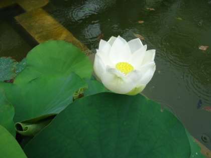 中庭の池に、地域の方から頂いた蓮を植えて、一ヶ月がたちました。