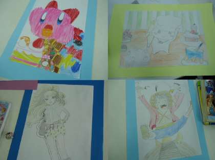 「まんが・イラストクラブ」では、作品を仕上げて、最後に、一学期に描いたお気に入りの作品の発表会をしました。