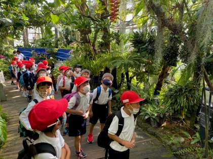 今日は1年生の子どもたちが心待ちにしていた秋の遠足で、鶴見緑地公園へ行ってきました。咲くやこの花館では、初めて見る世界の様々な植物に子どもたちは大喜びで鑑賞していました。
