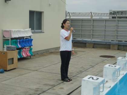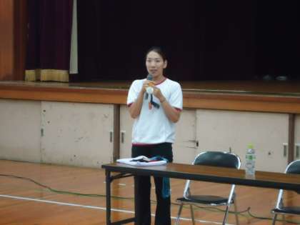 今日学校にお招きしたのは、シンクロナイズドスイミングの元日本代表で、世界水泳で金メダルに、シドニー・アテネの2大会で連続銀メダルに輝いた 巽 樹理(たつみ じゅり)さんです。