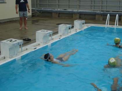 「みんなでシンクロをやってみよう。」と全員シンクロの授業です。