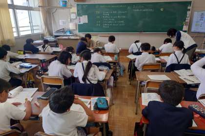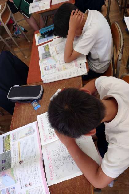 教科書の地図とにらめっこしながら、大阪府の土地がどのように使われているか、自分の考えをしっかりノートに書きました。