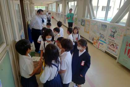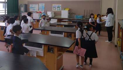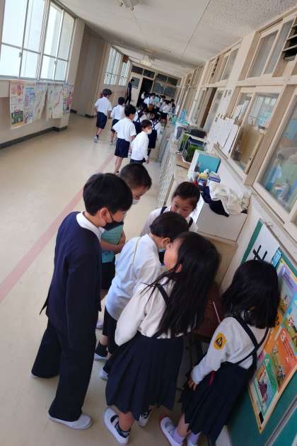 2年生に連れられて、学校のなかの、いろんなお部屋を見て回りました。