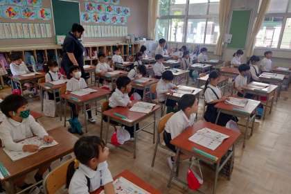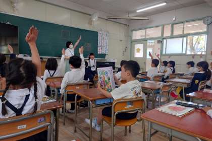 先生の問いに、たくさん手を挙げて、やる気満々です。