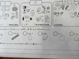 2年生では、食べものを3種類に分けて、それぞれの食べものの働きをがくしゅうしました。