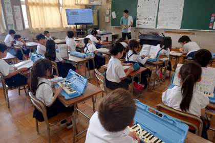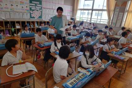 音楽の授業では、音の長さをくらべました。