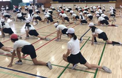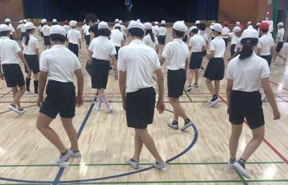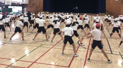 ボックスステップ、スライドステップ、ランニングマンなど教えてもらい、6年生もBTSを踊りました。