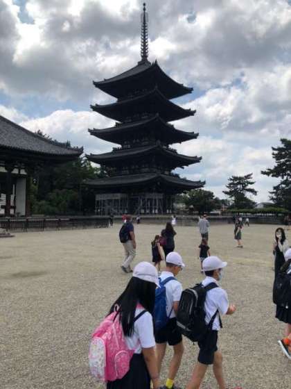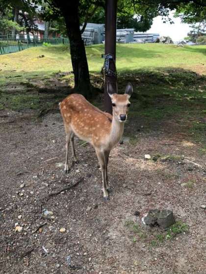 無事奈良公園に到着しました。シカが歓迎してくれています。