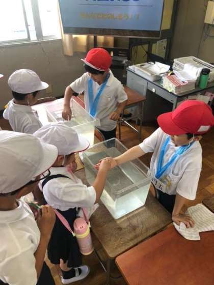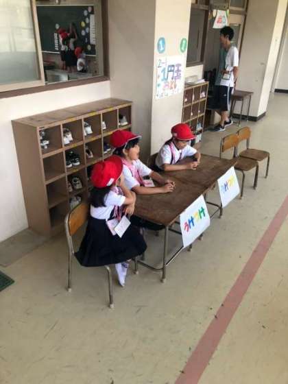 2年1組は1円玉落としです。みんな集中して1枚でも多くお皿に入れてね。