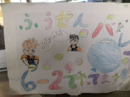 6年2組は風船バレーです。どれだけ落とさずつなげるかな。