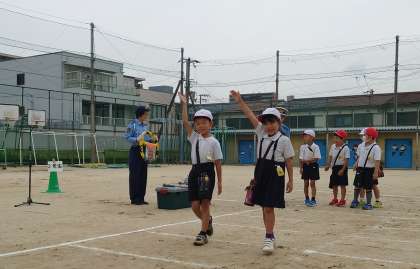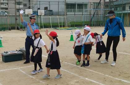 旭警察署の方に来ていただき、正しい道の歩き方を教わりました。