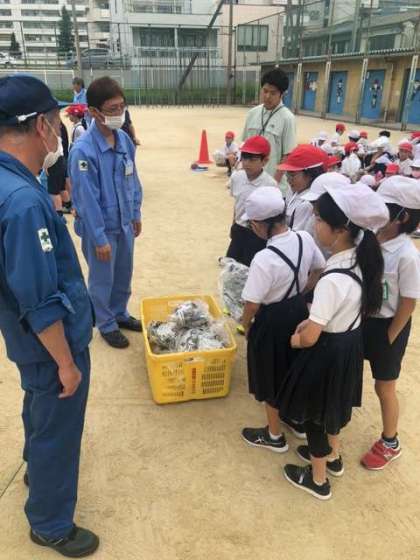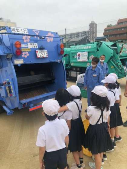 2時間目に、4年生はごみのことについて学習しまさした。分別のことについてはもちろんのこと、ごみ収集車から流れている音楽についてや、ごみが与える環境への影響なども学習しました。