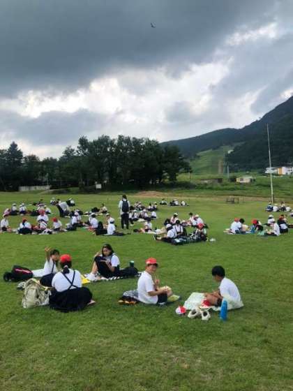 自然の中でお昼ごはんです。みんな揃っていただきます。