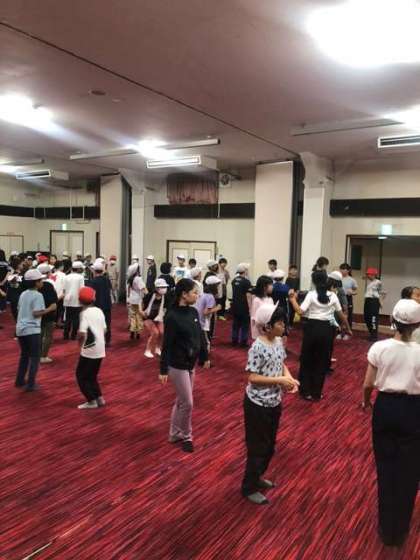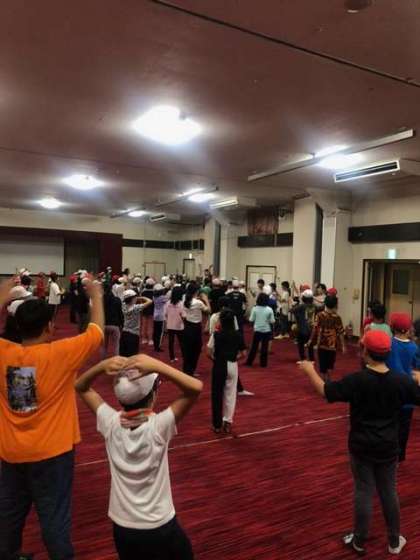 大広間を使って、キャンプファイヤー係が考えた遊びをしています。