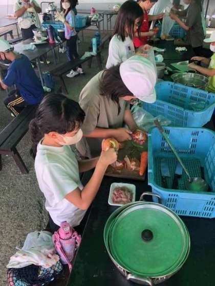 カレー作りが始まりました。みんな役割を考えて作っています。出来上がりが楽しみです。