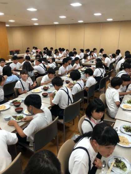 本日の昼食です。献立はピラフです。高原遊びは時間と暑さの関係で行うことができませんでした。
