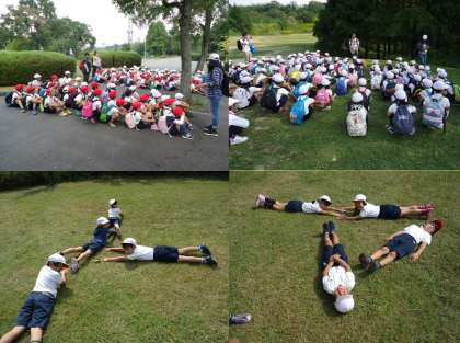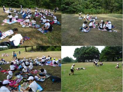 一緒に電車に乗っていた他の学校の人たちは、一つ手前の山田駅で降りて万博公園に行ったので、広い公園を、高殿小学校で貸し切りの状態でした。