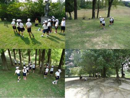 ゴールした班は、林の中で遊んだり、ドングリを拾ったりしながら思い思いに秋の公園を楽しみました。