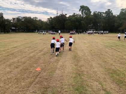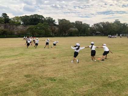 クラス対抗なかよし手繋ぎリレーです。