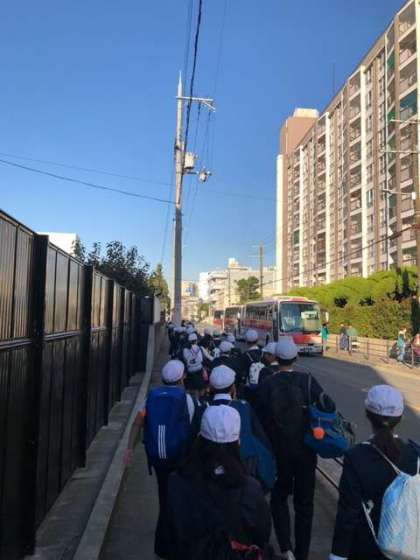 6年生にとって待ちに待った修学旅行の日がやってまいりました。天気にも恵まれ、絶好の修学旅行日和です。