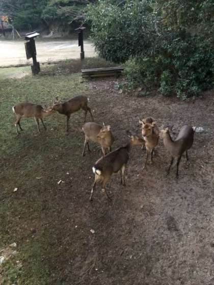おはようございます。とても気持ちの良い朝がやって参りました。今日も雲一つない晴天です。児童も鹿も朝から元気です。