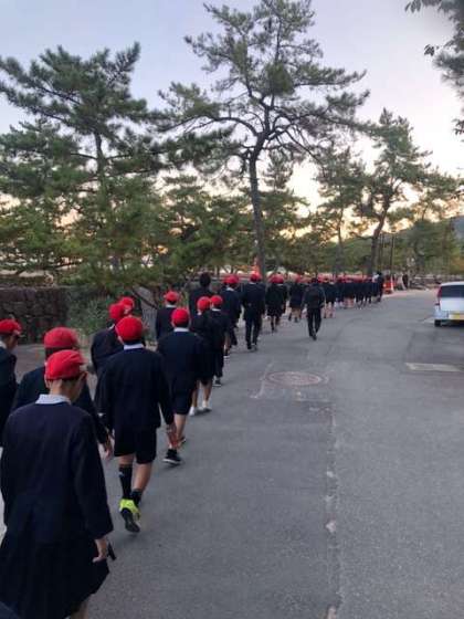時間通り全員集合できました。今から厳島神社の見学に向かいます。