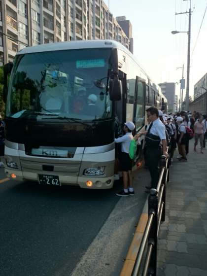 出発式を終えて、まずは新大阪駅に向けて出発しました。