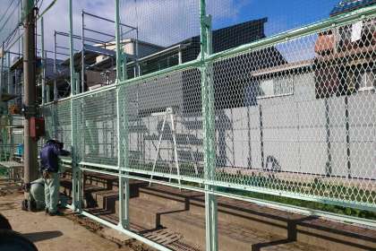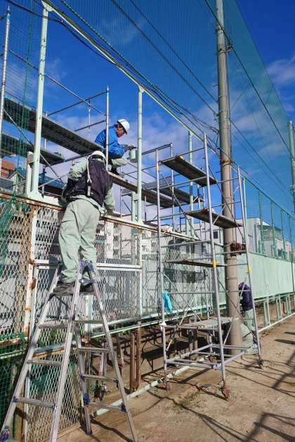 営繕作業で、運動場のフェンスをきれいに塗ってもらっています。