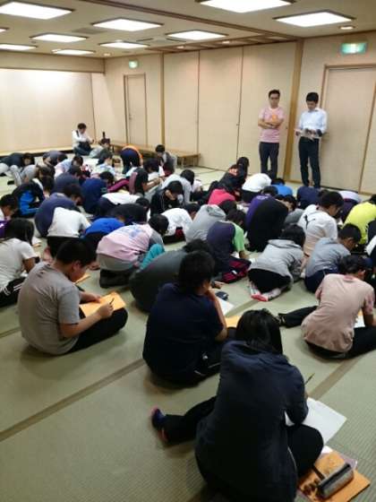 宿舎に戻って入浴を済ませ、今日最後のプログラムの振り返りをしました。