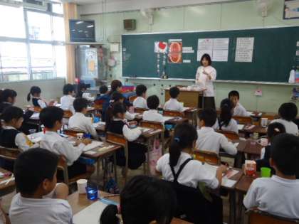 歯科衛生士の先生に来ていただき、2年生が、歯磨き指導を受けました。