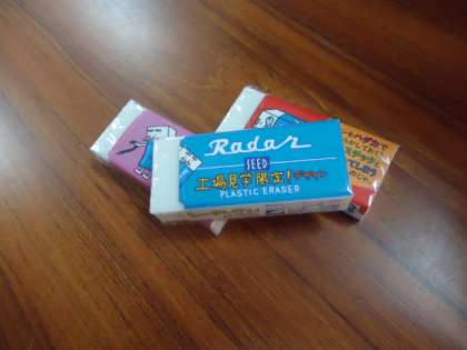 その後、質問タイムでは、工場の方から消しゴムの歴史などについても教えていただき、お土産に社会見学限定の消しゴムをいただきました。