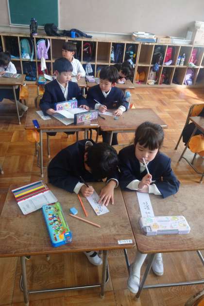 日直カードをつくったり、自己紹介カードを書いたりしました。