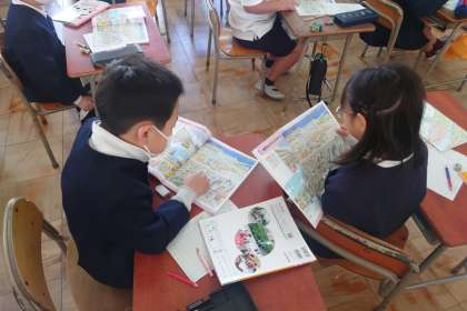 町の中にはどんなものがあるのか、2枚の絵を見比べて考えました。